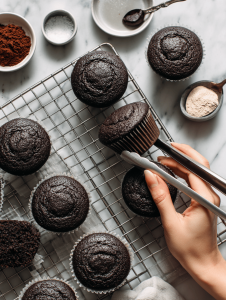 Black velvet cupcakes are rich, moist chocolate cupcakes with a striking deep black hue, achieved through cocoa powder and food coloring. The batter is gently mixed to create a velvety crumb, then baked until fluffy and smooth on the surface. Once cooled, they showcase a dark, dramatic appearance with a tender, melt-in-your-mouth texture.