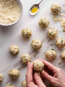 - Shape the mixture into golf ball-sized meatballs, pressing firmly to ensure they hold together well.