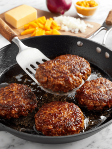 Step 2: Heat a heavy skillet over medium-high heat (around 180°C/356°F). Add a splash of oil. Cook the patties for 4-5 minutes on each side, until deeply caramelized and cooked through.