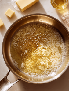 - Melt the butter in a large saucepan over medium heat until it’s bubbly and fragrant, about 2-3 minutes.