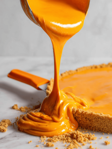 7. Pour the pumpkin filling over the cooled crust, spreading it out evenly with a spatula.