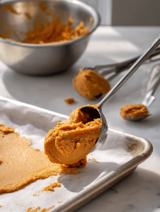 Step 7: Scoop spoonfuls onto the prepared baking sheets, spacing about 2 inches apart.