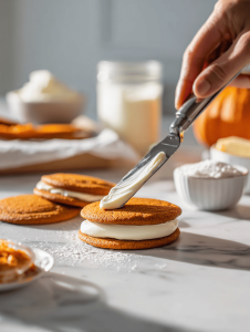 - Spread the filling generously on the flat side of one cookie, then top with a second cookie to form a sandwich. Repeat until all cookies are filled.
