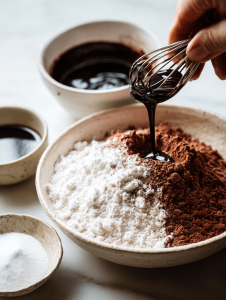 - Buttermilk: Adds tang and moisture, balancing the richness of cocoa. If you’re out, sour milk or yogurt works.