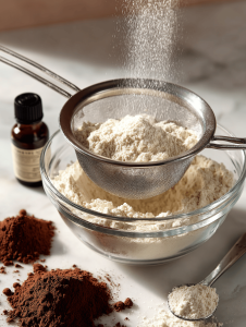- Sift together the flour, cocoa powder, and baking soda into a large mixing bowl. This aerates the dry ingredients and removes lumps, giving the batter a smooth, velvety texture.