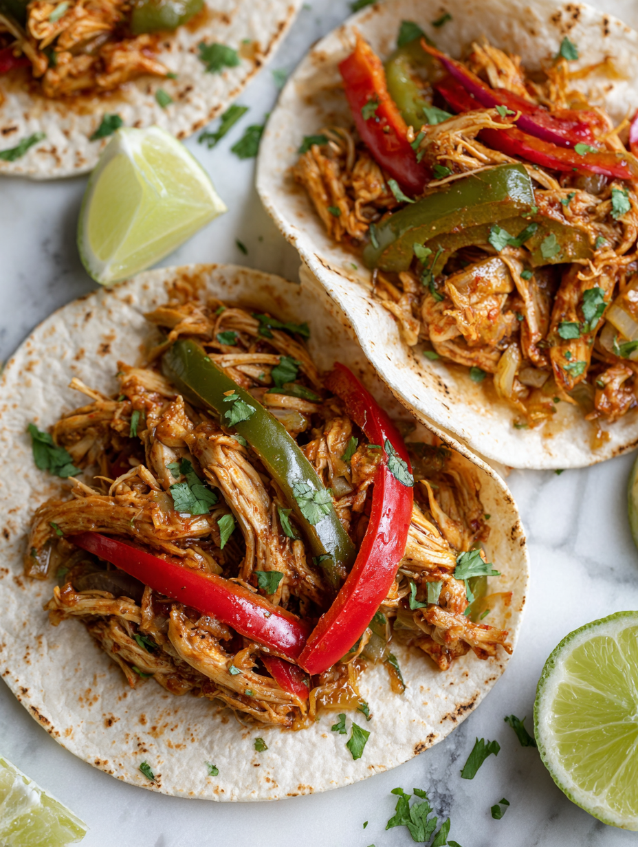This slow cooker chicken fajitas are tender, smoky, and bursting with flavor. Juicy chicken breasts and colorful peppers cook low and slow, developing deep spice and citrus notes, resulting in a juicy, shredded filling with a slightly charred, tender texture. Perfect for a hands-off, cozy meal served with warm tortillas and fresh toppings.