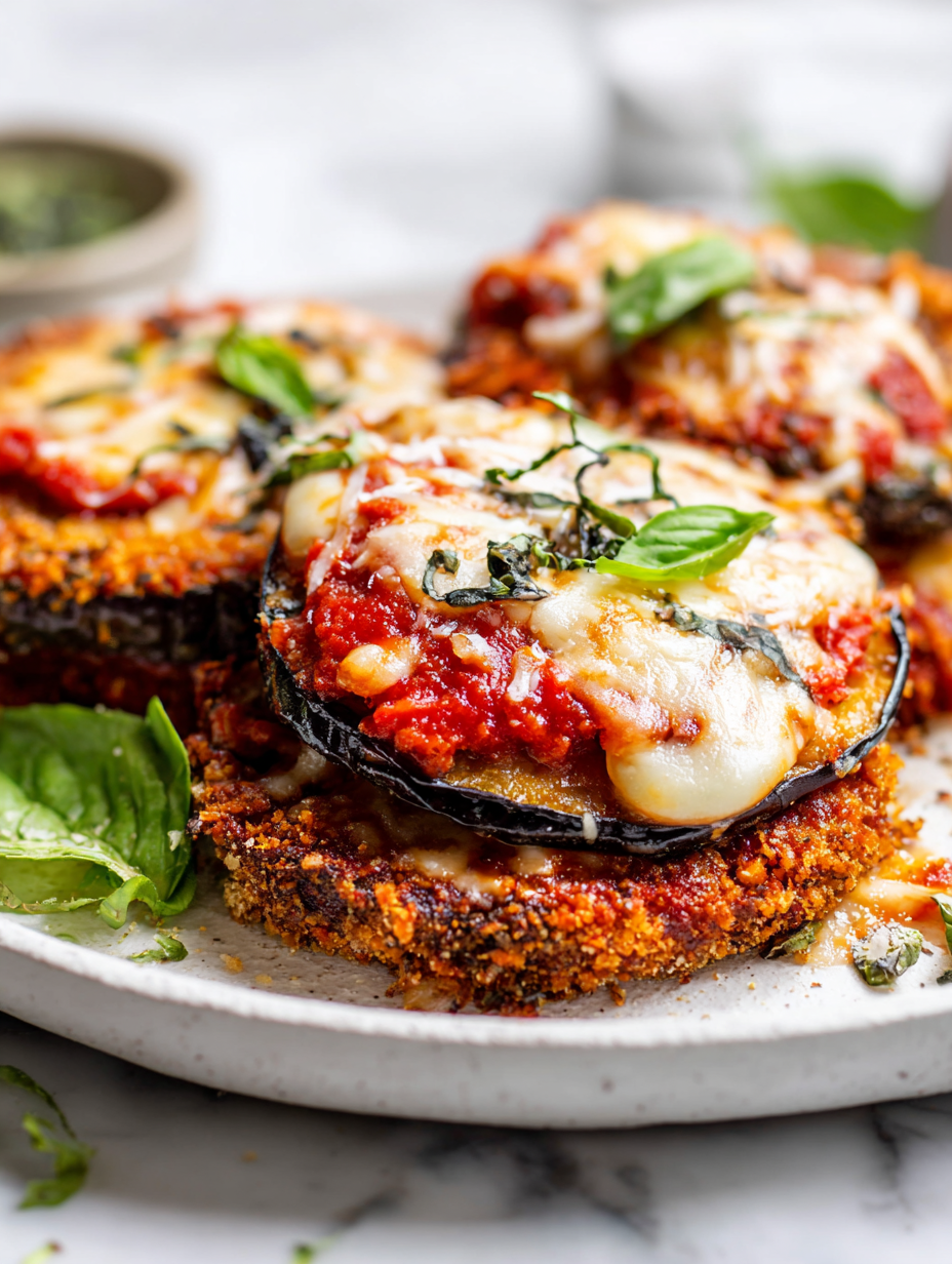 • Tomato sauce: I make my own with ripe tomatoes, garlic, and basil—bright, tangy, and thick enough to cling to eggplant slices. Use jarred if pressed for time, but taste first.