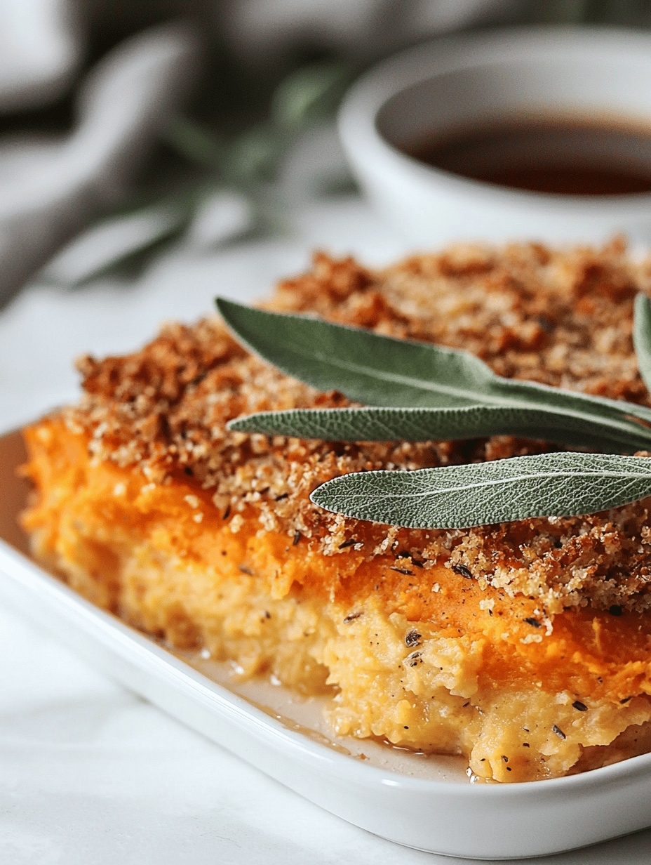 Savory Sweet Potato Casserole with Crispy Sage Topping