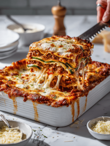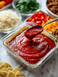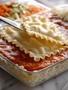 • Lasagna noodles: Al dente noodles provide the perfect structure without turning mushy.