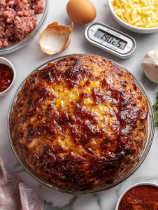 This hearty, oversized meatloaf combines ground beef and pork for a juicy, flavorful main dish. Bound with breadcrumbs and flavored with onions, Worcestershire sauce, and smoked paprika, it bakes until golden and crispy on top. The result is a rustic, satisfying loaf with a tender interior and a caramelized glaze.