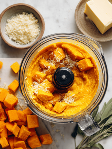 9. Serve immediately, garnished with extra Parmesan cheese if desired, and enjoy the warm, silky texture and comforting fall flavors in every bite.