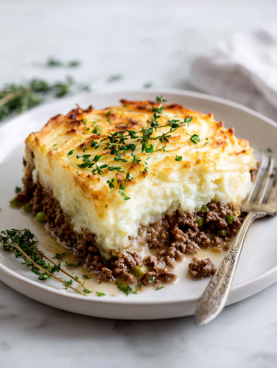Let the shepherd’s pie rest for at least 5 minutes after baking. This allows the filling to set, making slices neat and preventing spilling. Serve directly from the dish, or transfer to a platter for presentation.
