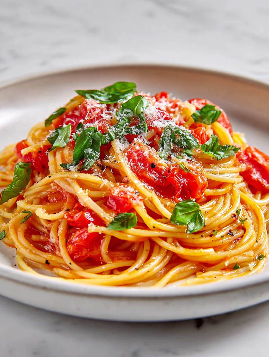 • This dish started as a way to use up a bumper crop of tomatoes one summer. I’d spend mornings wandering through my garden, picking the ripest, juiciest fruits, and by evening, I’d be tossing them with fresh basil and garlic. It’s simple, honest food—nothing fancy, just ingredients at their peak, coming together fast enough that I can still savor every bite while it’s warm.