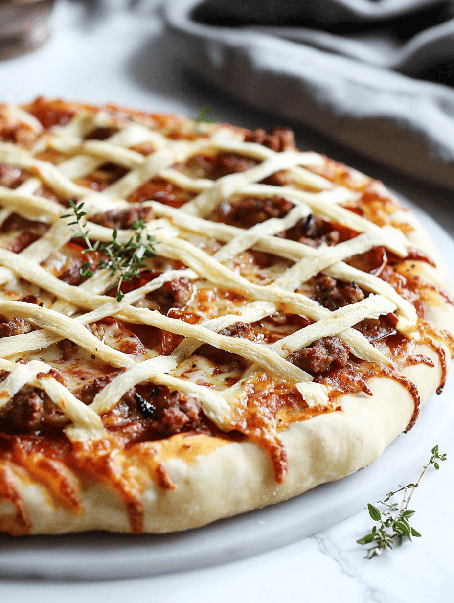 Mummy Pizza is a playful baked dish featuring a pizza crust topped with melted cheese and sliced dough strips arranged to resemble bandages, with edible googly eyes adding a spooky touch. The final appearance is a bubbling, cheesy pizza with a fun, mummy-like presentation that’s both crispy and gooey at the edges.