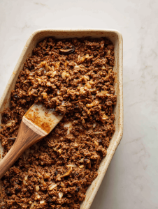 - Spread the meat mixture evenly in a baking dish, creating an uneven, rustic layer for a haunted look.