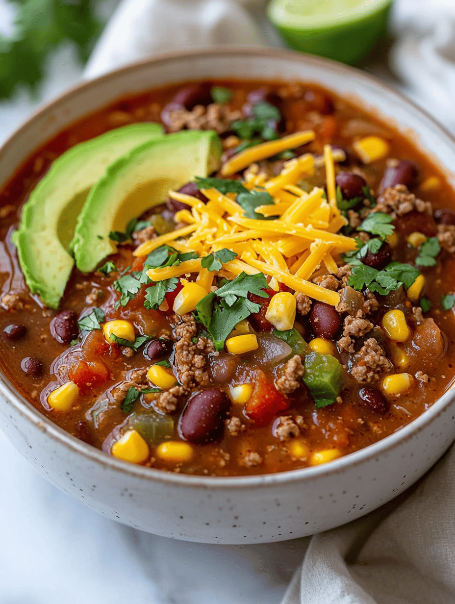 This version of taco soup artfully balances bold flavors with a comforting, slightly spicy kick. Making it during the early days of fall feels like easing into a cozy blanket — familiar yet exciting. Plus, it’s the kind of dish that tastes even better the next day, when the flavors deepen and mingle.