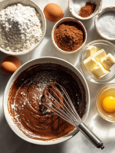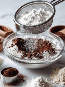 Step 3: In a bowl, mix the dry ingredients: flour, cocoa powder, baking powder, and salt.