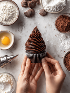 - Once cooled, spread a generous swirl of chocolate or vanilla frosting on each cupcake using a piping bag fitted with your favorite tip.