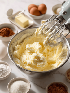 - In a separate bowl, beat the softened butter and sugar together until the mixture is light, fluffy, and smells slightly sweet, about 2-3 minutes.
